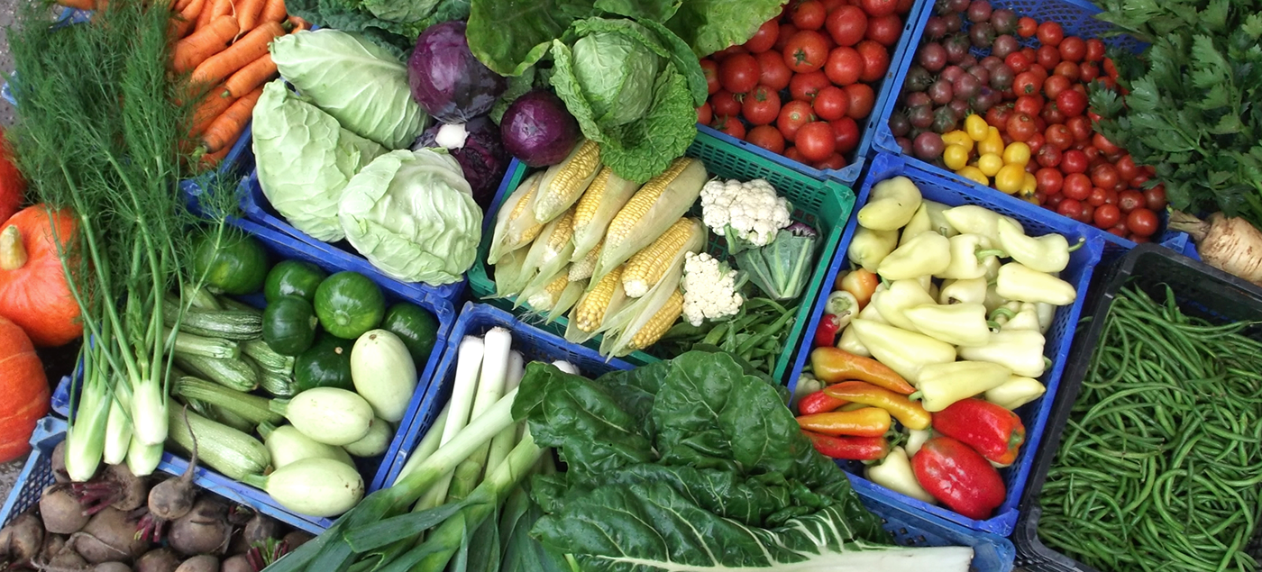 An unserem wöchentlichen Buffet gibt es das ganze Jahr über eine vielfältige Auswahl an regionalem Gemüse, Salaten und Kräutern, die einfach nur gut schmecken.
